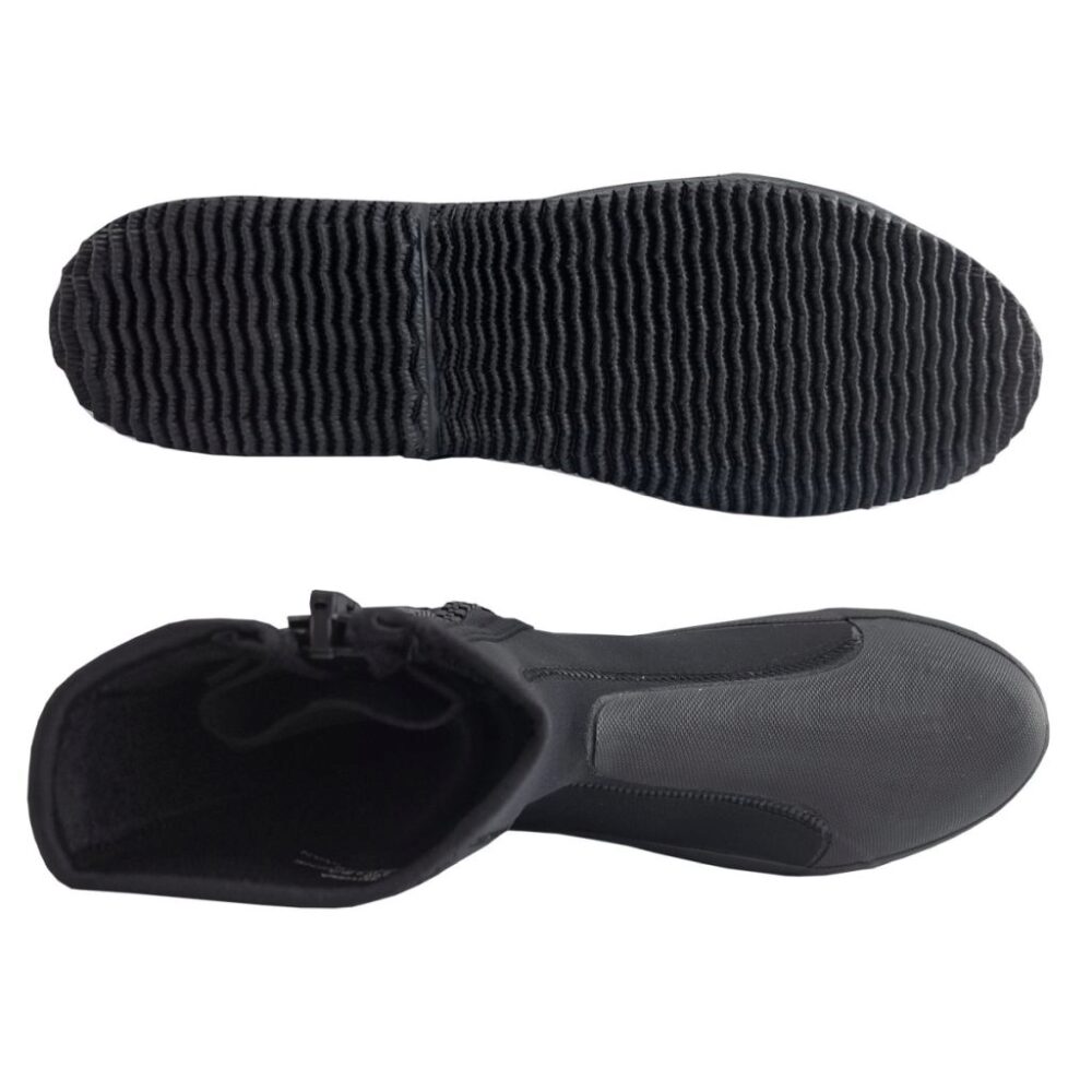 Warmth is achieved with 5mm nylo-2 neoprene rubber, and a cold-water zipper dam. The aggressive sure-grip sole keeps you stable on the slipper decks or rocks making these one great pair of boots. These boots come in multiple sizes and are black in color.