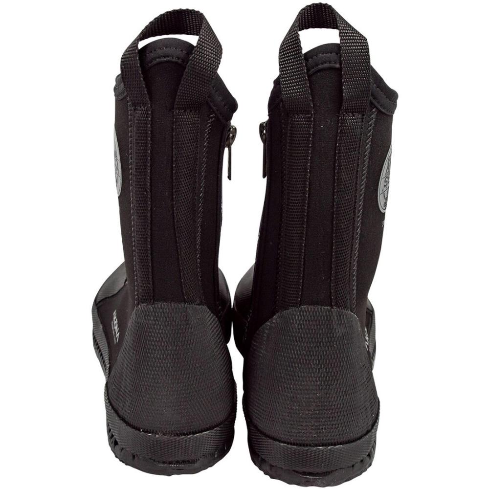 Glued and blind stitched seams mean warmth and durability. All edges finished with black, sewn elastic nylon binding that prevents wear and tears. Boots have #5 YKK Delrin zippers with marine-grade bronze zipper pulls and a dam that prevents water from seeping into boot and keeps you warmer.Boots are available in multiple sizes, comes in a mesh drawstring carry bag that can double as a collection bag and are black in color.