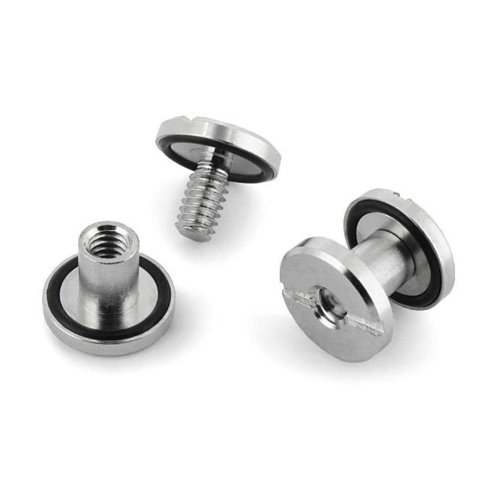 The Dive Rite Stainless Steel Assembly Screws are used for attaching various accessories to a Transpac harness or to a hard back plate (such as lift bag pouches, suit inflation mounting systems and side mount butt plates). Another common use is to secure the wing to the Transpac harness or hard back plate when rigged for a single tank. Designed to fit through a 3/8" hole, the Stainless-Steel Assembly Screws include O-rings that create friction to help keep the screw in place. Screws are sold as a set of two.