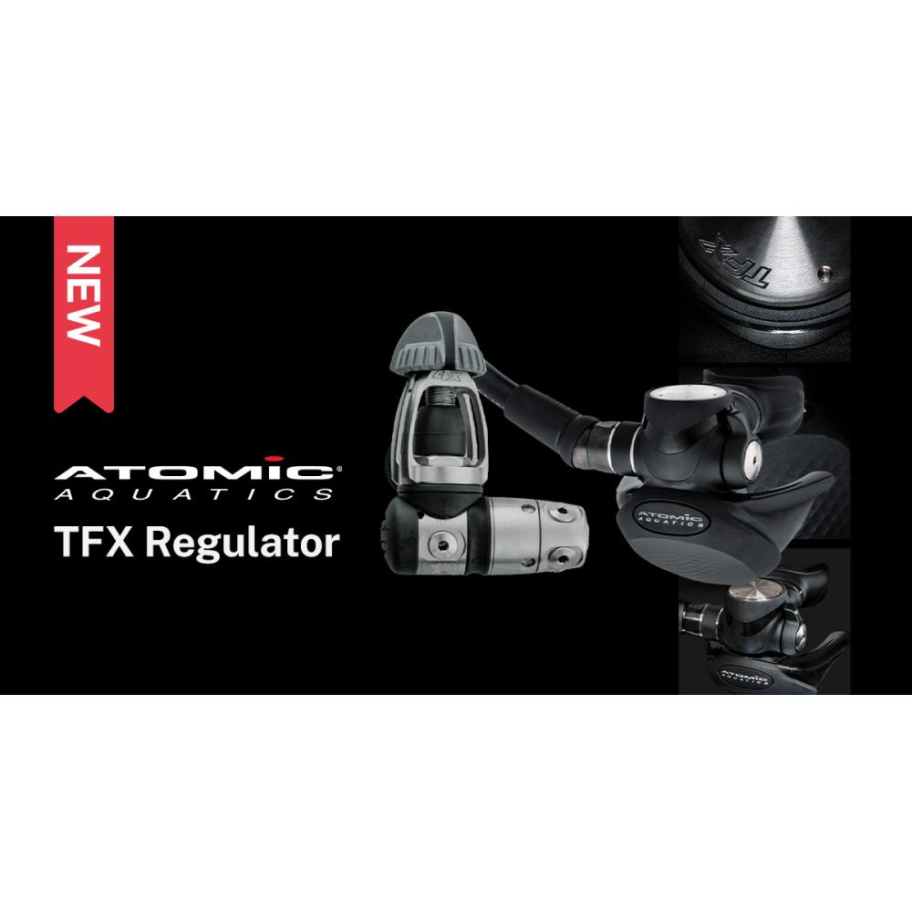 Atomic Aquatics engineers reimagined the rather unconventional front exhaust regulator design to create the most natural and effortless breathing regulator for all diving attitudes or positions. Traditional rear exhaust regulators have more breathing resistance in certain dive positions, like looking up. The TFX gives divers enhanced and sophisticated air delivery with dramatically reduced inhalation effort compared to all other regulators on the market.