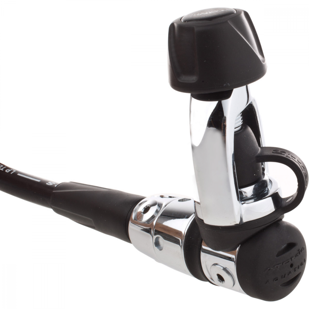 • Pneumatically-balanced poppet, high-flow case and lever design for easy breathing at all depths and tank pressures.