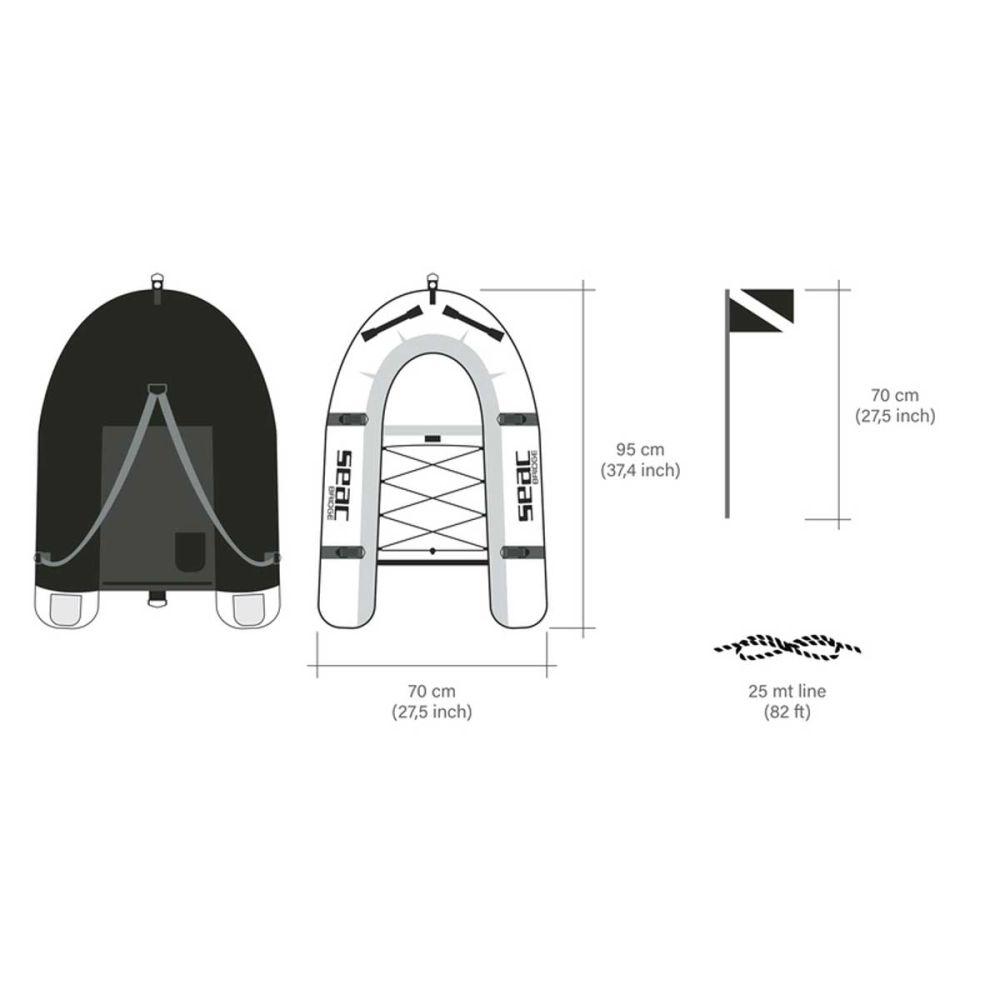* The Seac Bridge is designed for transporting the freediver and the equipment to the dive site. The dimensions of the Seac Bridge allow you to to lay on it during recovery times or when you feel tired. Dimensions 37.4 x 27.5 in.