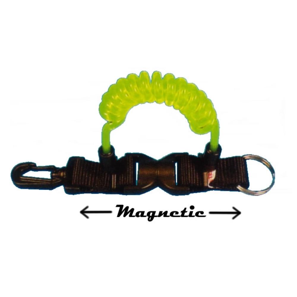 With Traylon High energy magnets the Magna-clip, magnetically connects and disconnects one handed. It holds up to 4 lbs. (1.8 kg) of weight. It's easy to connect and easy to release. High strength stretch coil provide connected security to consoles, slates, cameras, laser pointers, lights, fish cards, gauges and more. Clip is non-corrosive plastic 360° swivel gate clip for attachment to BCD D-ring and opposite end D-ring attachment. Magna-Clip keeps your accessory or gauge console and the environment protected from damage and close at hand. Magna-Clip can be extended up to 36" (91.4cm).