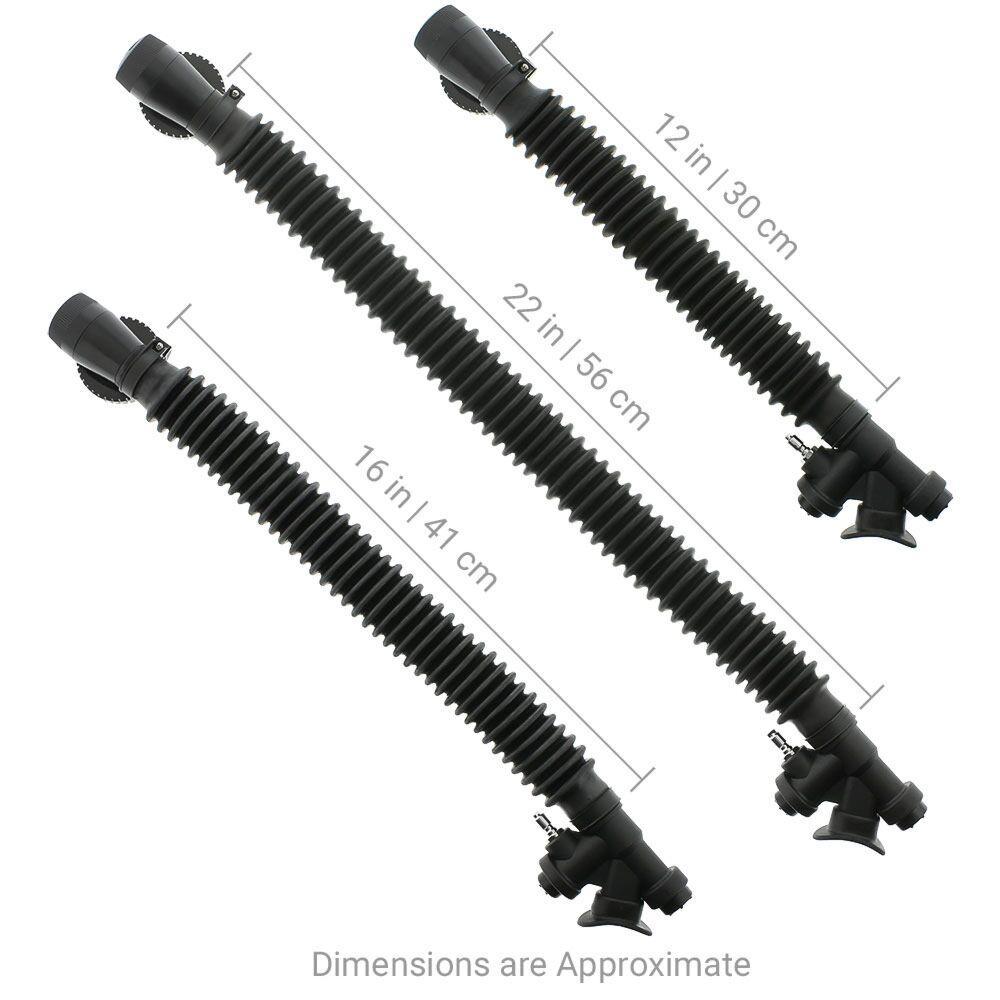 All Dive Rite wings come with the option of a 12-inch, 16-inch or 22-inch corrugated inflation hose with elbow or a 16-inch corrugated inflation hose with rapid exhaust (pull dump). A 12-inch rapid exhaust hose is available on request. Occasionally, divers find that they need to change the hose on their aircell for a different dive application. Divers who wear double back mounted tanks often prefer hoses with a low profile elbow that doesnt interfere with a regulator connection to the tank manifold. Many times, coldwater divers desire the longer 16-inch hose to reach past bulky exposure protection. Warm water divers frequently select the shorter 12-inch hose, unless they are large in stature. Recreational divers can benefit from the 16-inch rapid exhaust hose with convenient pull dump as well as conventional overhead exhaust.