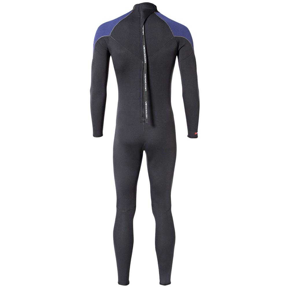 This 3mm suit is made with uncompromising quality. The suits have seams that are glued and sewn, which seals off stitched areas and drastically reduces water entry. In the full-length jumpsuits, there is a self-sealing spine pad over the zipper to further limit water exchange and to help ease the discomfort of dive tanks. Down below, Freedom Flex kneepads provide a super-tough exterior with great mobility. Each Henderson wetsuit benefits from five decades of design experience. The Thermoprene cut allows for an optimal fit while visually enhancing the diver's physique. Creature comforts include Lycra trimmed cuffs, a spine pad and an adjustable collar. Suit has a #10-YKK back zipper with zipper tab leash for easy donning and doffing. Suit is black/blue in color and available in multiple sizes.