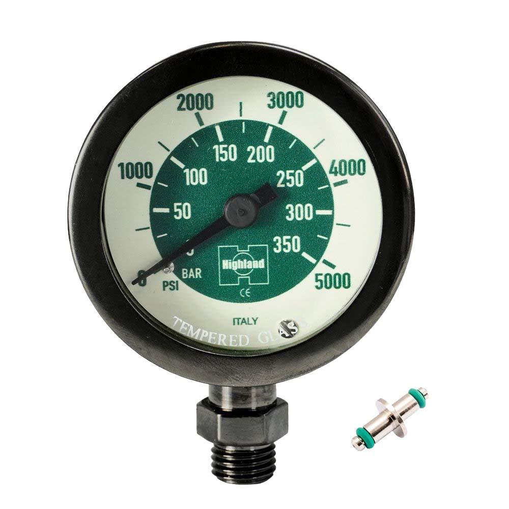Highland has expanded its popular line of Brass & Glass analog gauges with the addition of two models that sport a PVD coating. PVD (Physical Vapor Deposition) coatings dramatically improve the appearance and durability of a product. This hard-as-nails coating is 300 times harder than chrome. The Highland 2 in PVD Brass & Glass SPG (Dual Scale) incorporates both PSI and BAR making it perfect for diving in any country no matter the unit of measurement they use. The Highland 2 in PVD Brass & Glass SPG (Dual Scale) is the preferred gauge for technical diving due to high level of accuracy and reliability.