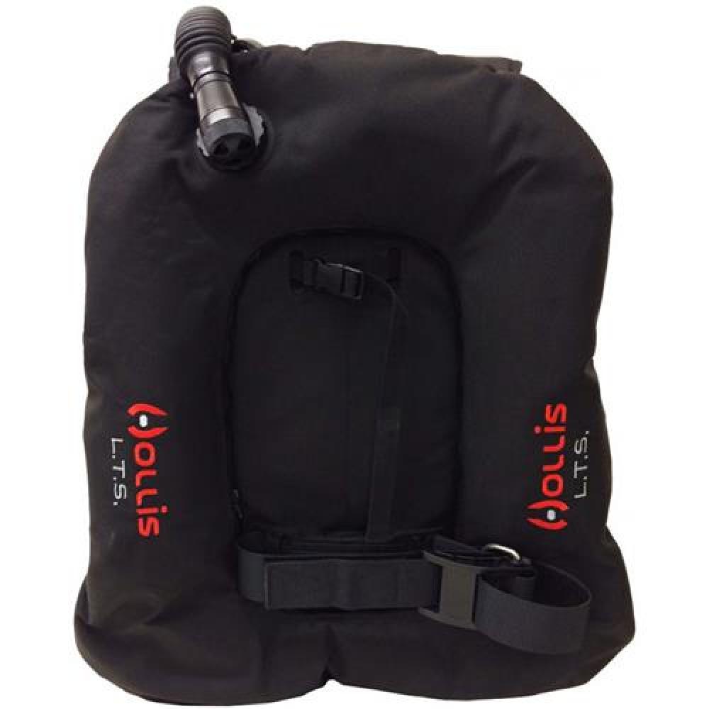 The Hollis Gear power inflator mechanism with cable activated shoulder pull dump exhaust valve provides precise buoyancy control. The inflator system is made from durable impact resistant plastic with a corrugated rubber hose. The internal components and inlet quick-disconnect nipple are made from chrome plated brass. The LTS is available in multiple sizes, comes with a 3/8" threaded low-pressure quick-disconnect hose, and owner's manual.