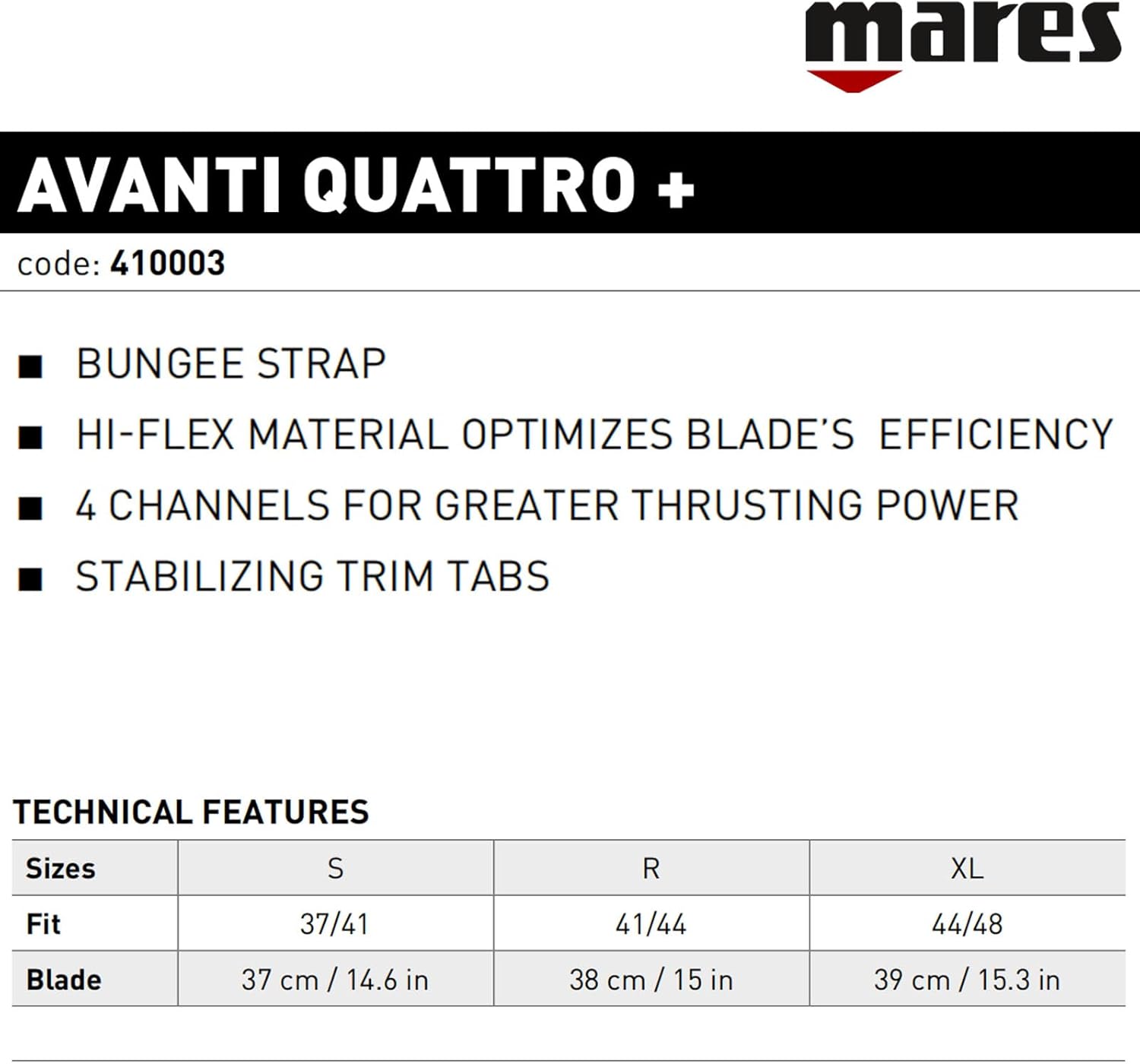 Mares fins, such as the Quattro, Volo, and X-Stream models, stand for the highest requirements for open heel fins in diving. They are the result of continuous development and research at Mares HQ. Nevertheless, the fin development team asked themselves how could the ‘Quattro’ – a legend among fins – be improved even further? Incredible, but true – the result is the Avanti Quattro +.