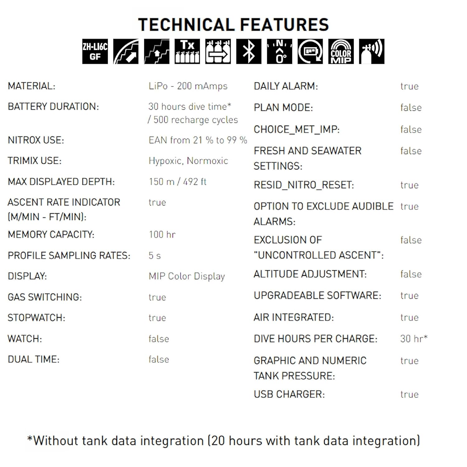 Experience unmatched visibility with its 8-color, high-resolution MIP display, providing jumbo-sized information that's easy to read in any underwater condition. The integrated full-tilt digital compass ensures accurate navigation, enhanced by a handy stopwatch feature. Plus, the hoseless tank data integration connects with up to five transmitters, offering a streamlined dive setup.