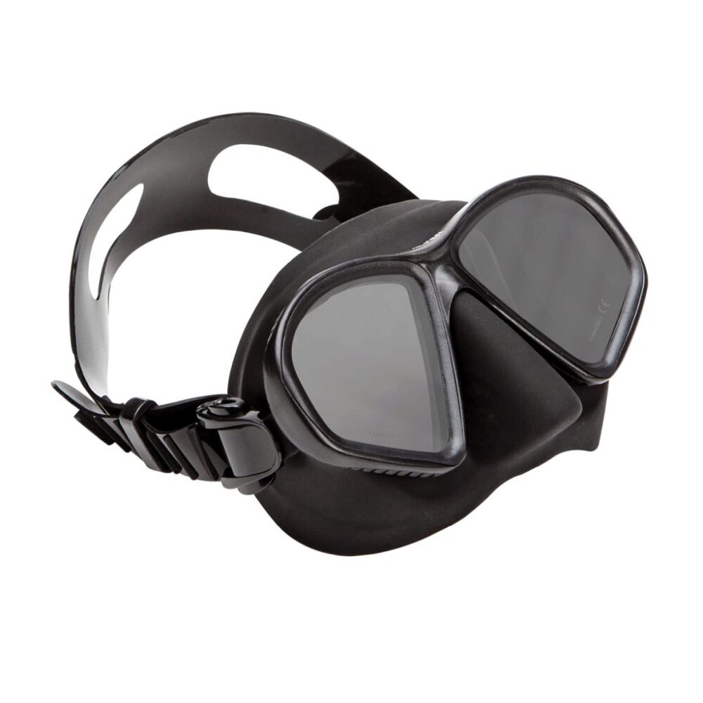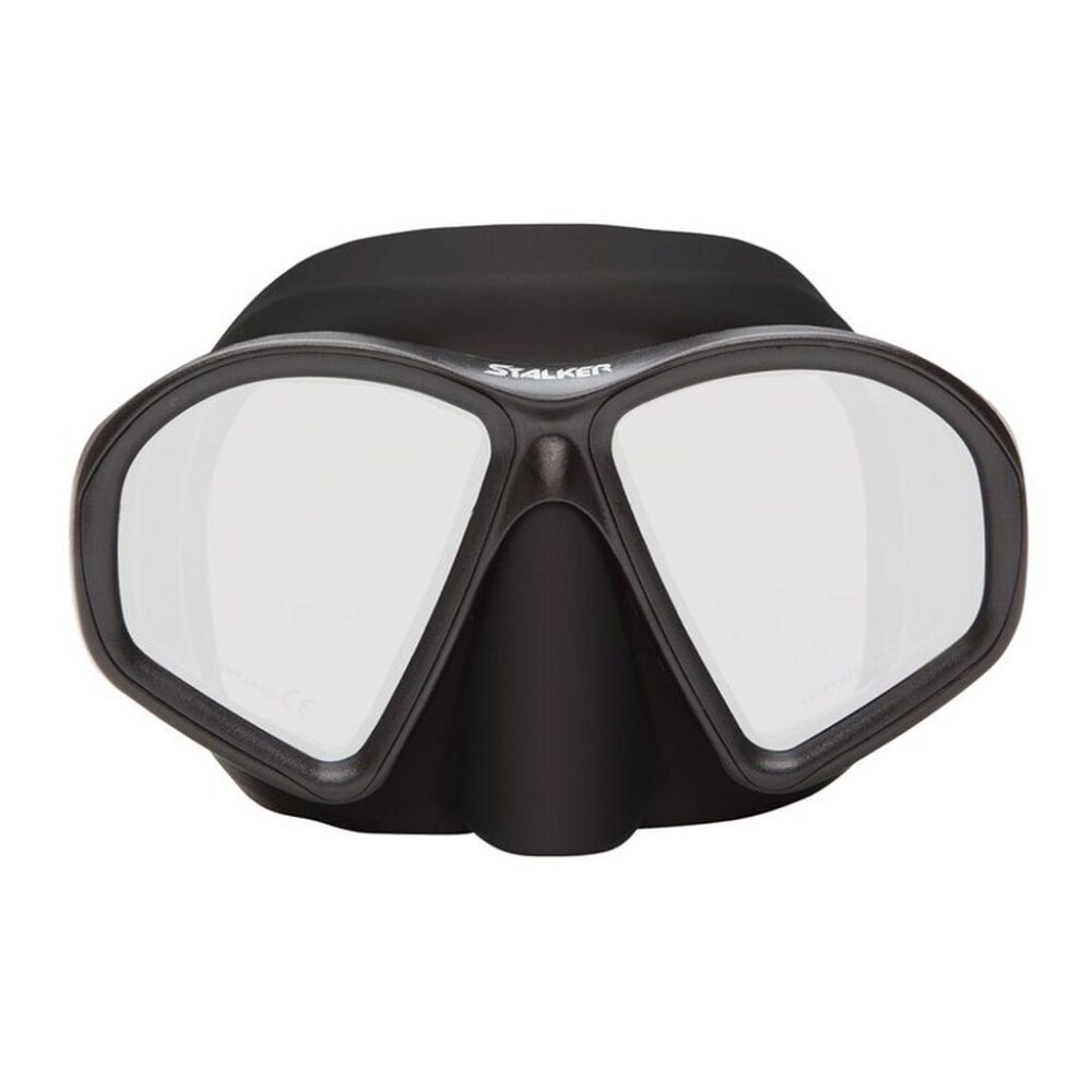 Did you ever wonder why all the good spear fishermen wear only dark rubber masks? Clear Silicone Rubber can Create Reflections on the Inside of the Lenses from Surface Light Distracting the Hunters Focus on the Prey. Real Underwater Hunters always wear Black. The XS Scuba Free Diver Stalker Mask is a favorite among free divers and spear fishermen. This two lens mask is available in stealthy all black or camo-green. The all black version of the mask includes a unique lens coating so that the fish cannot see the diver s eyes.