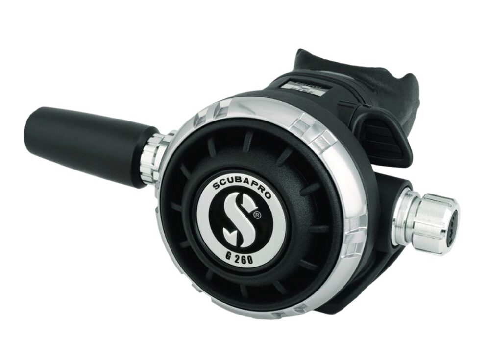 The G260 is a balanced adjustable second stage with metal components, offering excellent cold-water resistance. Its high performance suits demanding divers, and the new left-right hose attachment option is perfect for tech diving configurations. The regulator features a diver-adjustable inhalation effort, Venturi initiated vacuum assist (VIVA) to prevent free flow in cold water, and a high flow exhaust valve for better breathing comfort. Weighing 39.8 oz (1,128.3g), the regulator comes with a manual and is designed for top performance in any conditions.
