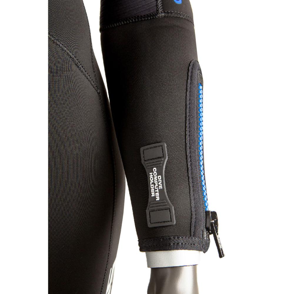 And there's more! Geometrically patterned, the suit's protective inserts on the chest and shoulders safeguard against friction from diving gear. Plus, a savvy rubber buttonhole insert on the left cuff keeps your dive computer securely in place. Seac Space is available in 5 or 7 mm neoprene.