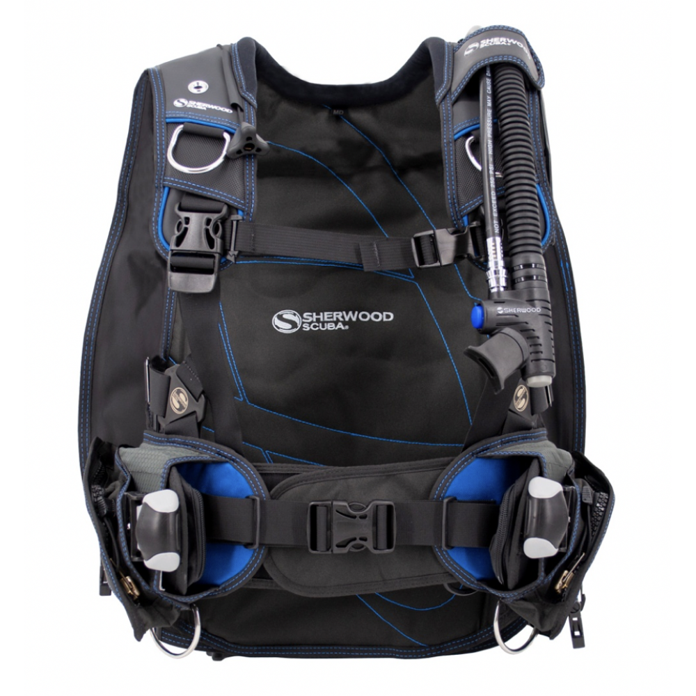 The Sherwood Axis BCD is quite possibly the best fitting BCD you will ever try on. Sherwood’s new Three Point Harness (3PH) allows the Dive Center to make additional micro adjustments to the waistband, shoulder straps, and cummerbund that all provide the diver a comfortable fit, but more importantly it provides the diver a stable BC. The Axis pulls the scuba cylinder right up against the small of your back and eliminates all tank shifting. This BC is one of a kind.