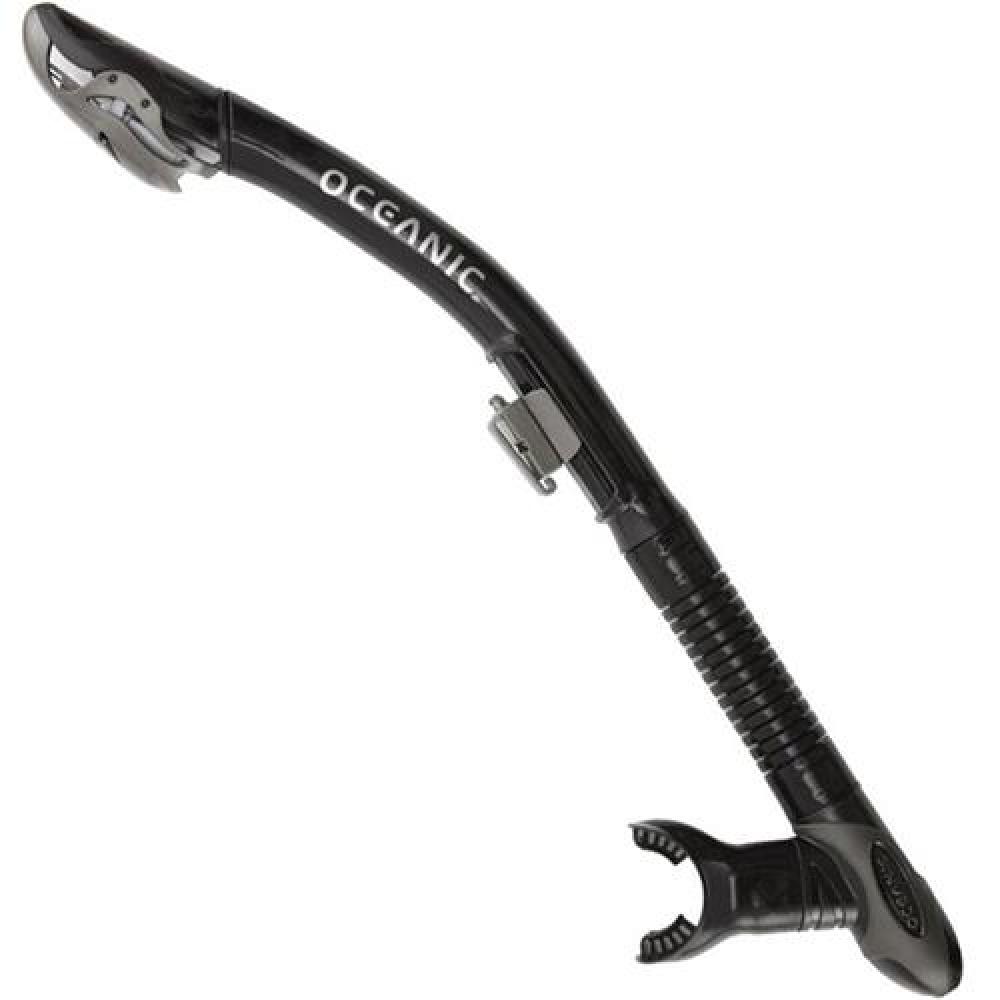 The Ultra-Dry Snorkel by Oceanic remains practically desert dry, even when at depth. Oceanic's patented dry snorkel technology eliminates water from entering the barrel while still allowing easy airflow and comfortable breathing. The Ultra-Dry boasts of an ergonomic design that reduces resistance and drag when snorkeling, a drop-away corrugated section will keep the snorkel out of your way when it isn't in use and reduces jaw strain when you're snorkeling.
