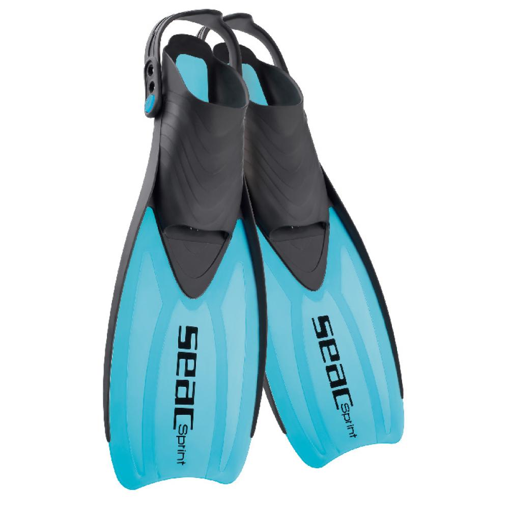 Sprint snorkeling fins Easily adjustable, the Sprint snorkeling fins from SEAC features a highly elastic and resistant elastomer strap that offers six adjustment positions. Available in blue and yellow, the Sprint also features a blade that's constructed from a special transparent polyolefinic resin. Founded in Italy in 1971, SEAC proudly continues to take the lead in producing high-quality diving gear and ensures that each and every product is individually verified and tested.