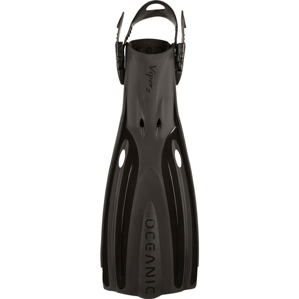 The Oceanic Open Heel Viper 2 Fins are ready to propel all of your aquatic adventures. Ideal for any skill level but they still pack a punch with the performance and aesthetics of an elite model. The Viper 2 includes a precision blend of hydrodynamics for ultimate comfort, efficiency and performance. The Flexible Power Thrust Channel and enhanced channel rails direct water flow off the tips of the fin without allowing water to spill from the sides of the blade and now provide uncompromising power and efficiency at a great value. But Oceanic didn't stop there. Fins are manufactured from a composite material consisting of blended of thermal plastic rubber (TPR) and polypropylene.